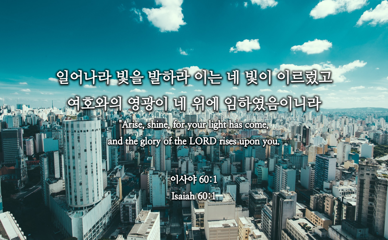 일어나라 빛을 발하라 이는 네 빛이 이르렀고 여호와의 영광이 네 위에 임하였음이니라